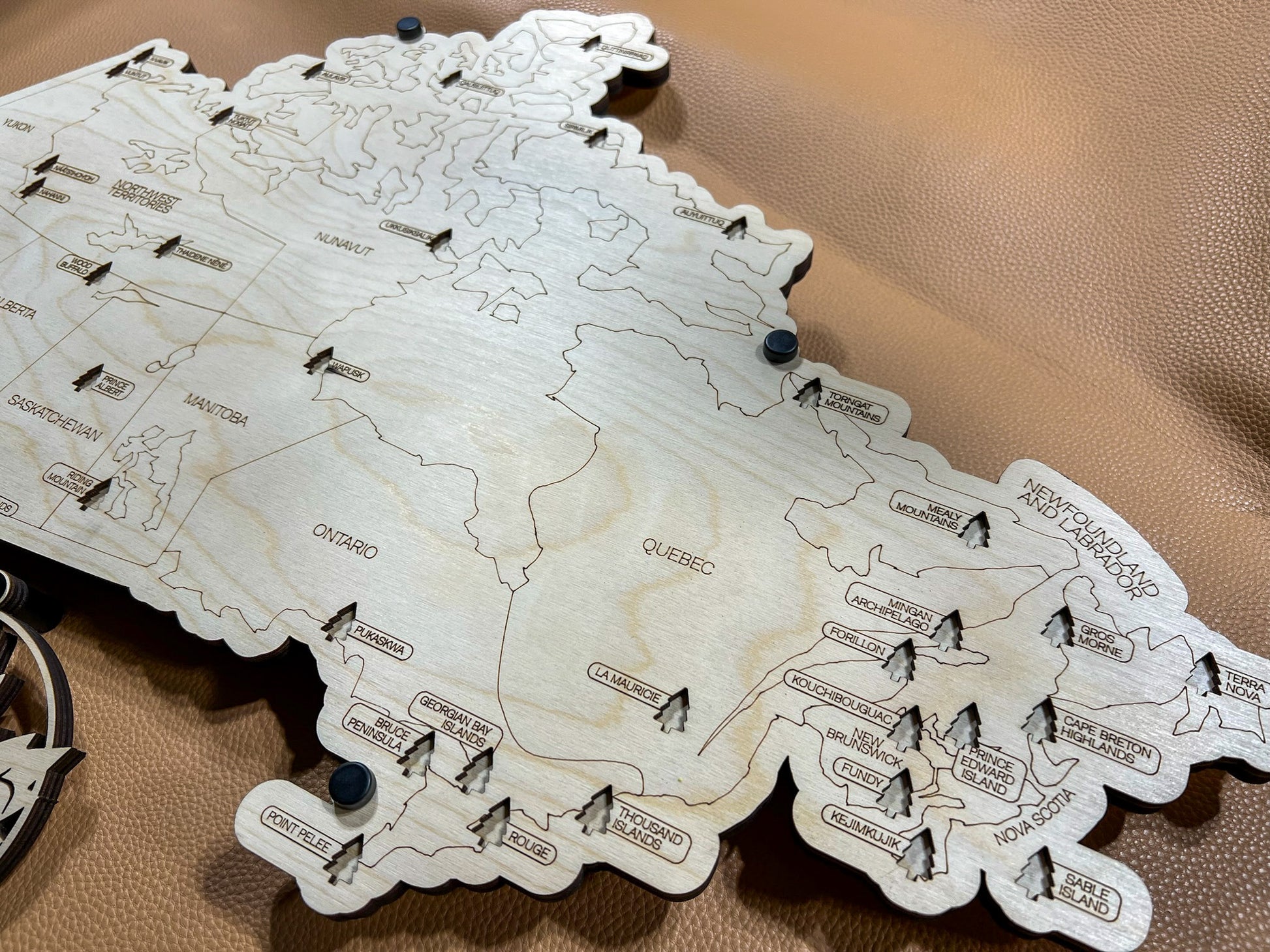 Whether you’re camping in the Rockies, hiking on the East Coast, or canoeing through the North, this handcrafted wooden map turns every adventure into a piece of wall-worthy art. Just place a 3M-backed, full-color token into each park’s slot as you explore, and watch your travel story come to life.