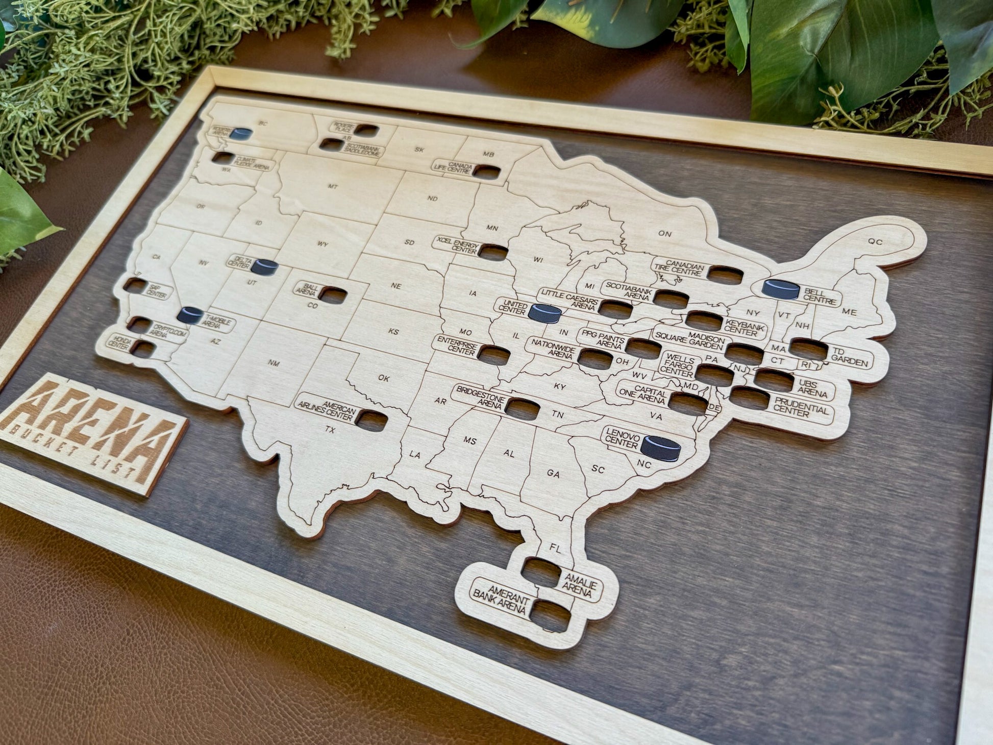 Whether it’s the roar of the crowd, the sound of skates carving ice, or the thrill of a buzzer-beater goal, there’s nothing like seeing a hockey game live. Our Pro Hockey Arena Bucket List Map helps you track your visits to every major U.S. and Canadian professional hockey stadium—and turn your fandom into wall-worthy art.